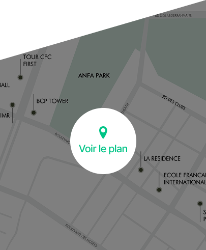 Idéalement située près d'Anfa Park, la Tour 33 offre un accès direct aux boulevards Moulay Abdellah Cherif et de l'Aéropostale, au cœur d'un quartier d'affaires dynamique avec 50 hectares de parc métropolitain et doté de multiples commodités : espaces verts, secteurs résidentiels accessibles, équipements collectifs, infrastructures culturelles et sportives.