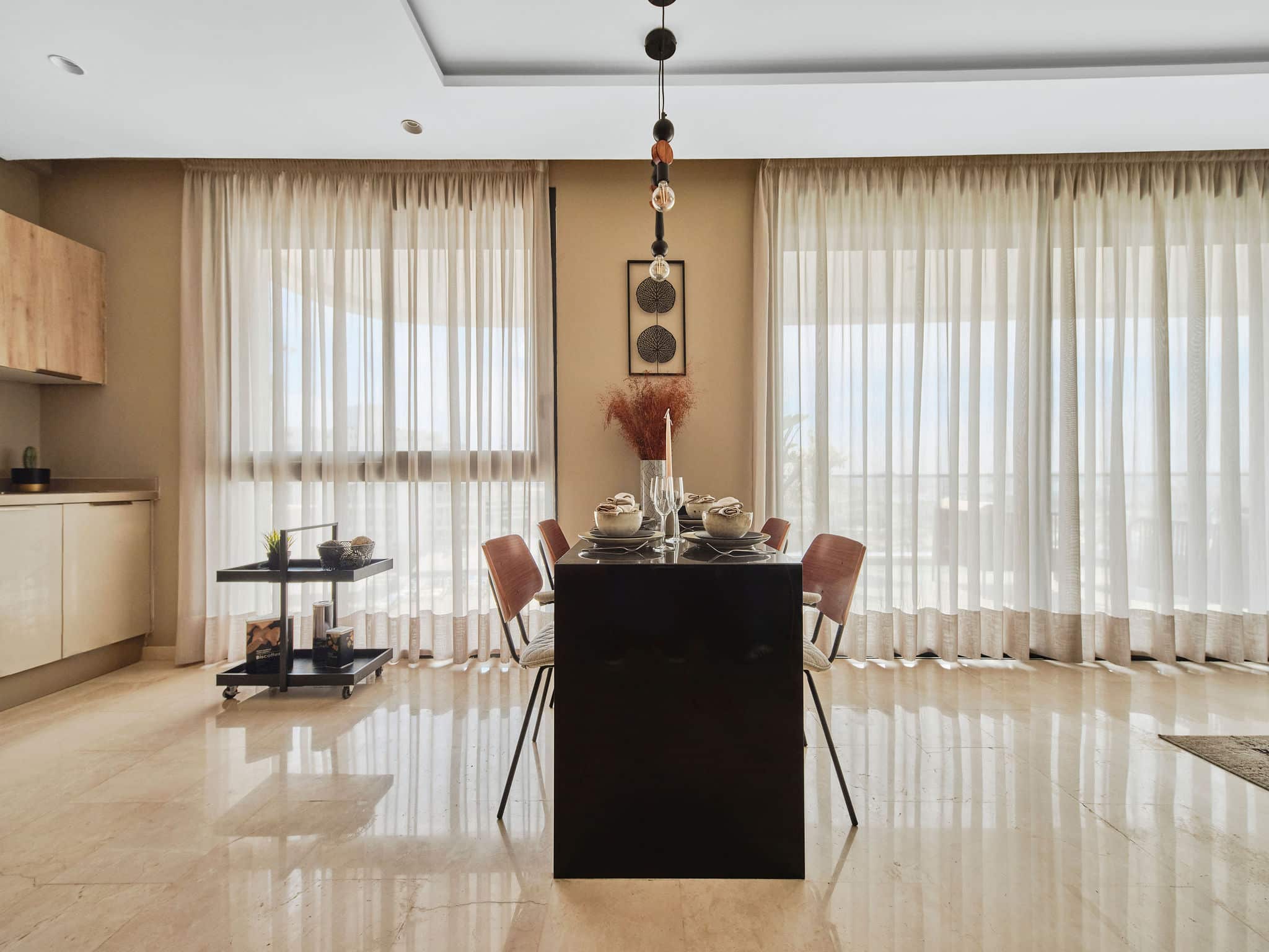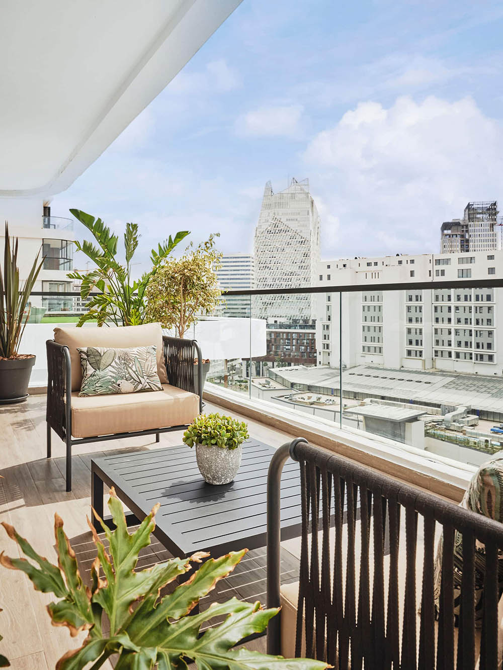 Les appartements, sobres et élégants, sont lumineux, spacieux et de haute facture. Chaque suite offre un espace de vie retiré du tumulte. Les résidents bénéficient d'une qualité de vie urbaine exceptionnelle, conciliant centralité et bien-être, avec un espace workout en plein air.