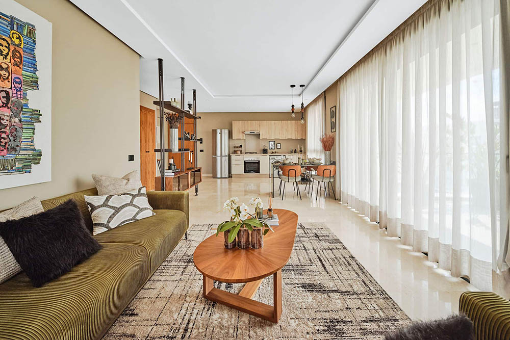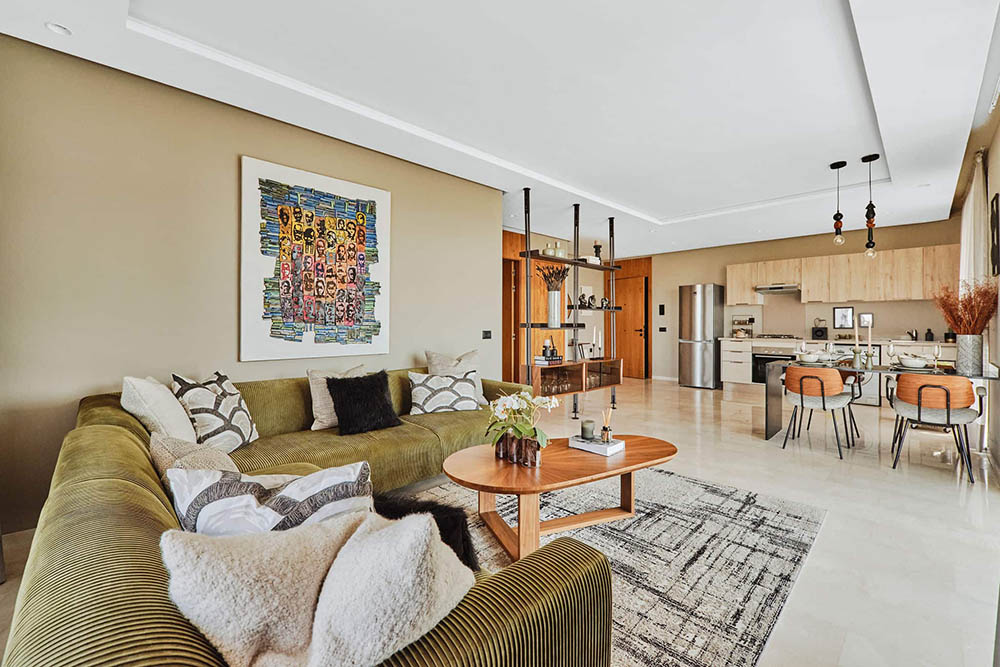 La construction en béton armé assure résistance et sécurité. Les appartements sont dotés de double vitrage, doubles cloisons, isolation thermique et phonique optimale, climatisation/chauffage, et sols en marbre, parquet et carrelage. Un parking souterrain numéroté est à disposition.